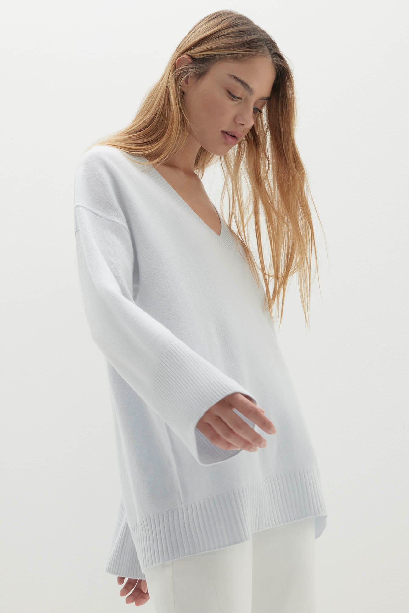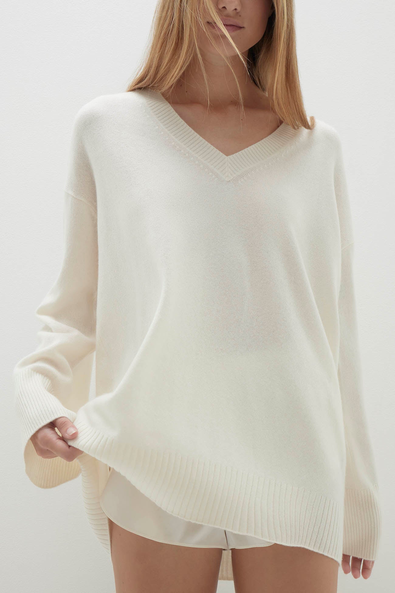 - Deep v-neck pullover